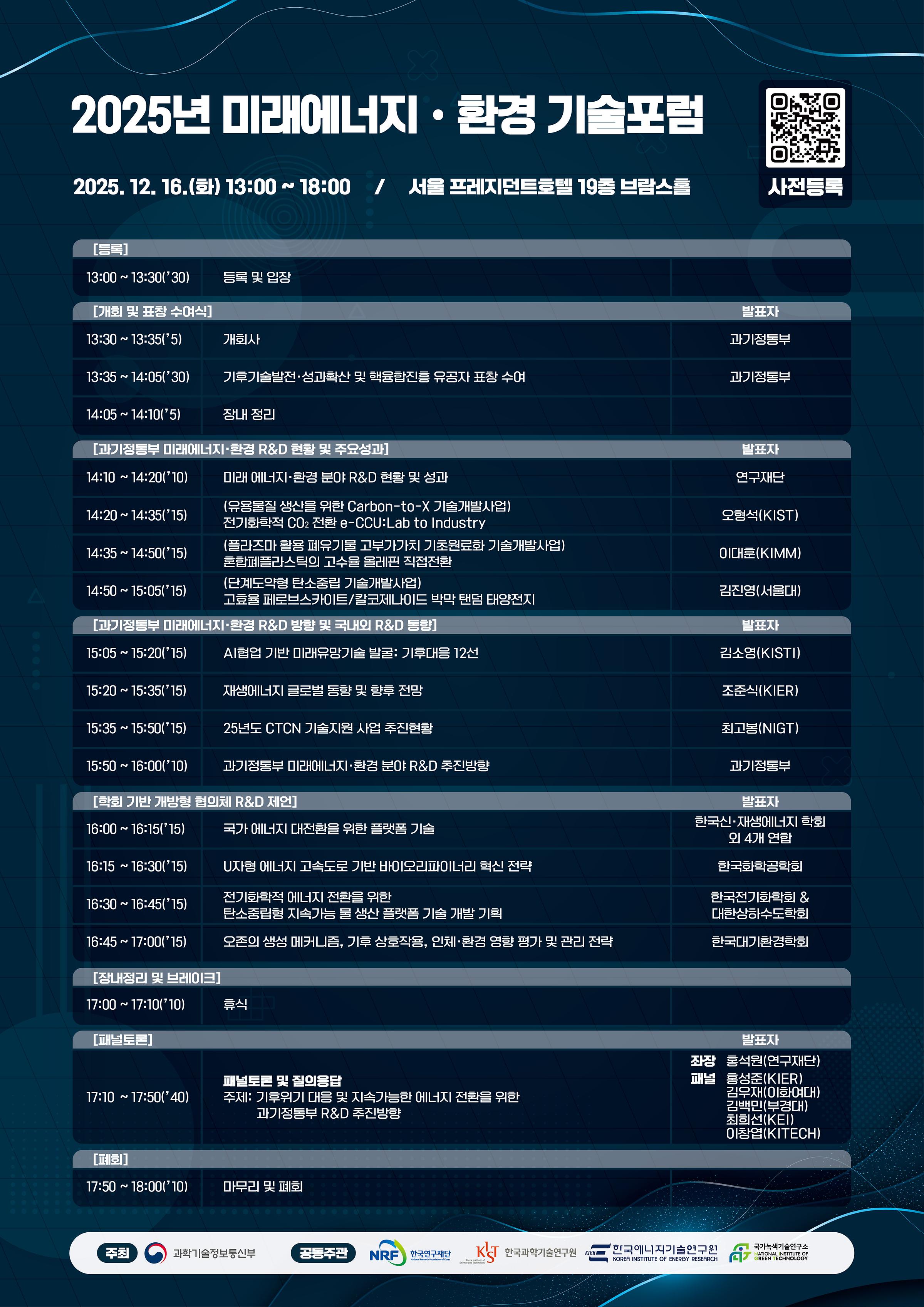 12월 16일(화), '2025 미래에너지 환경 기술포럼' 행사가